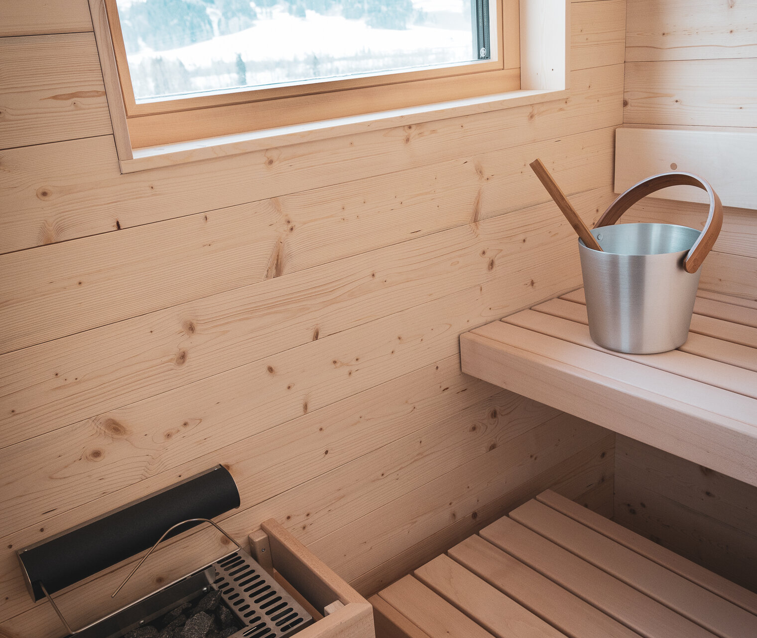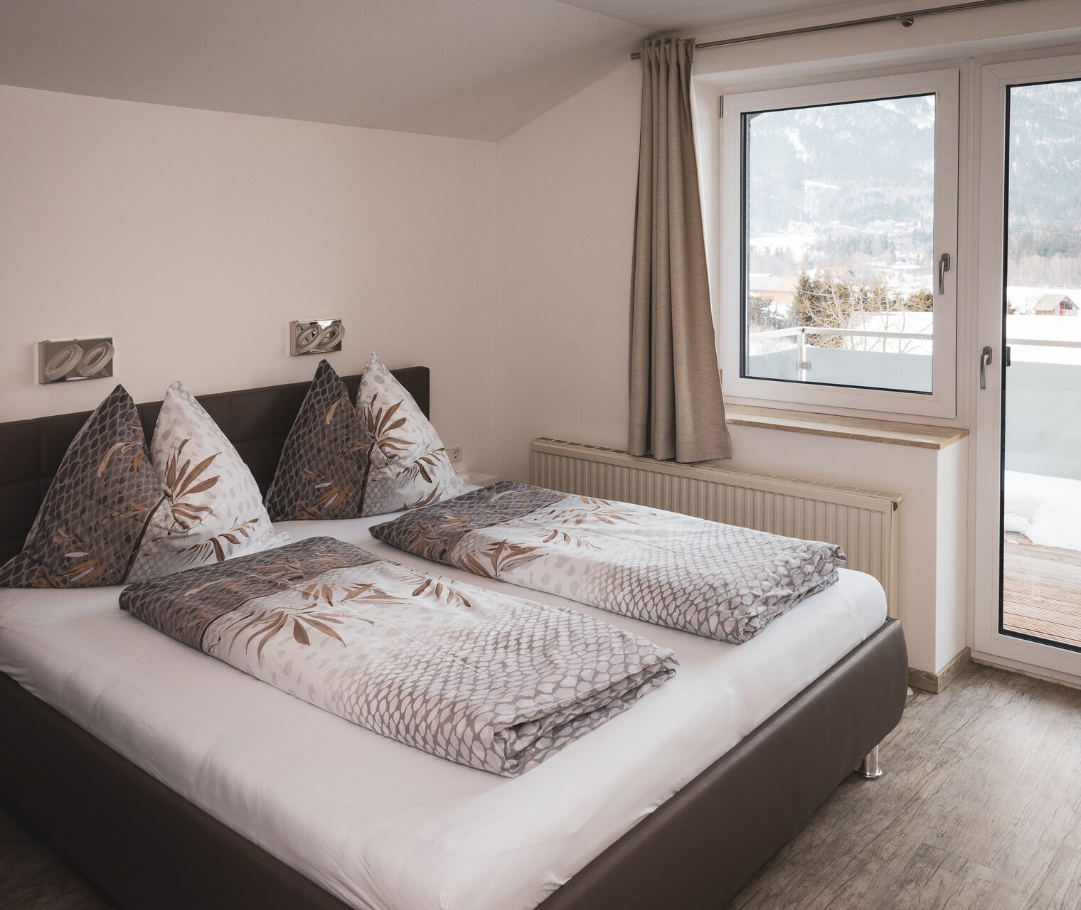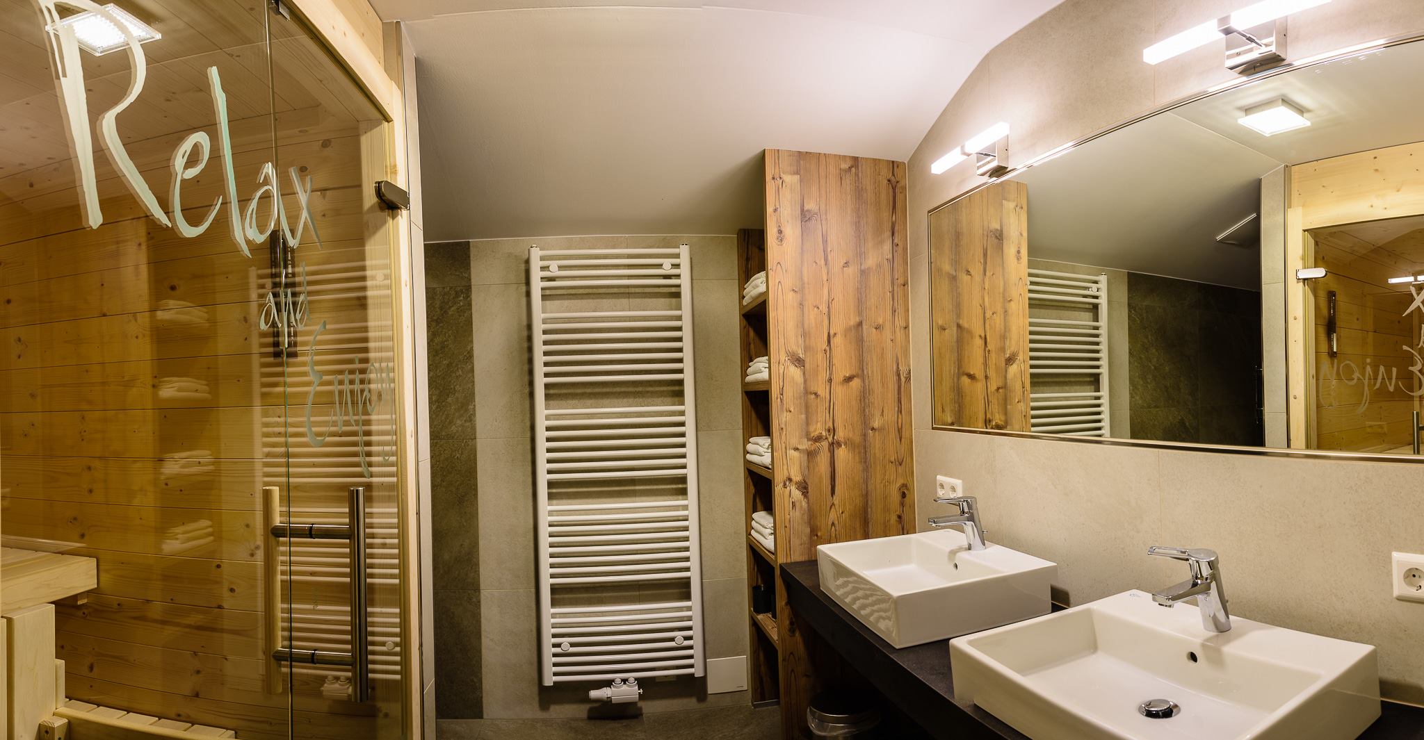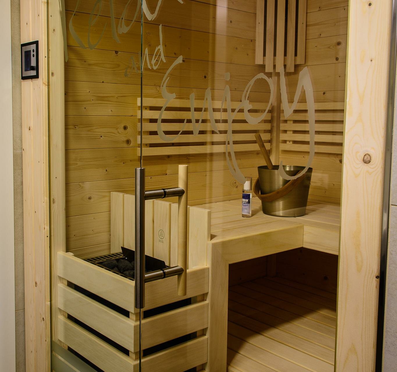 Nach einem aufregenden Tag können Sie in unseren Appartements entspannen und den Blick auf die verschneiten Berge und die untergehende Sonne genießen. Lassen Sie den Tag entspannt in der Sauna ausklingen.