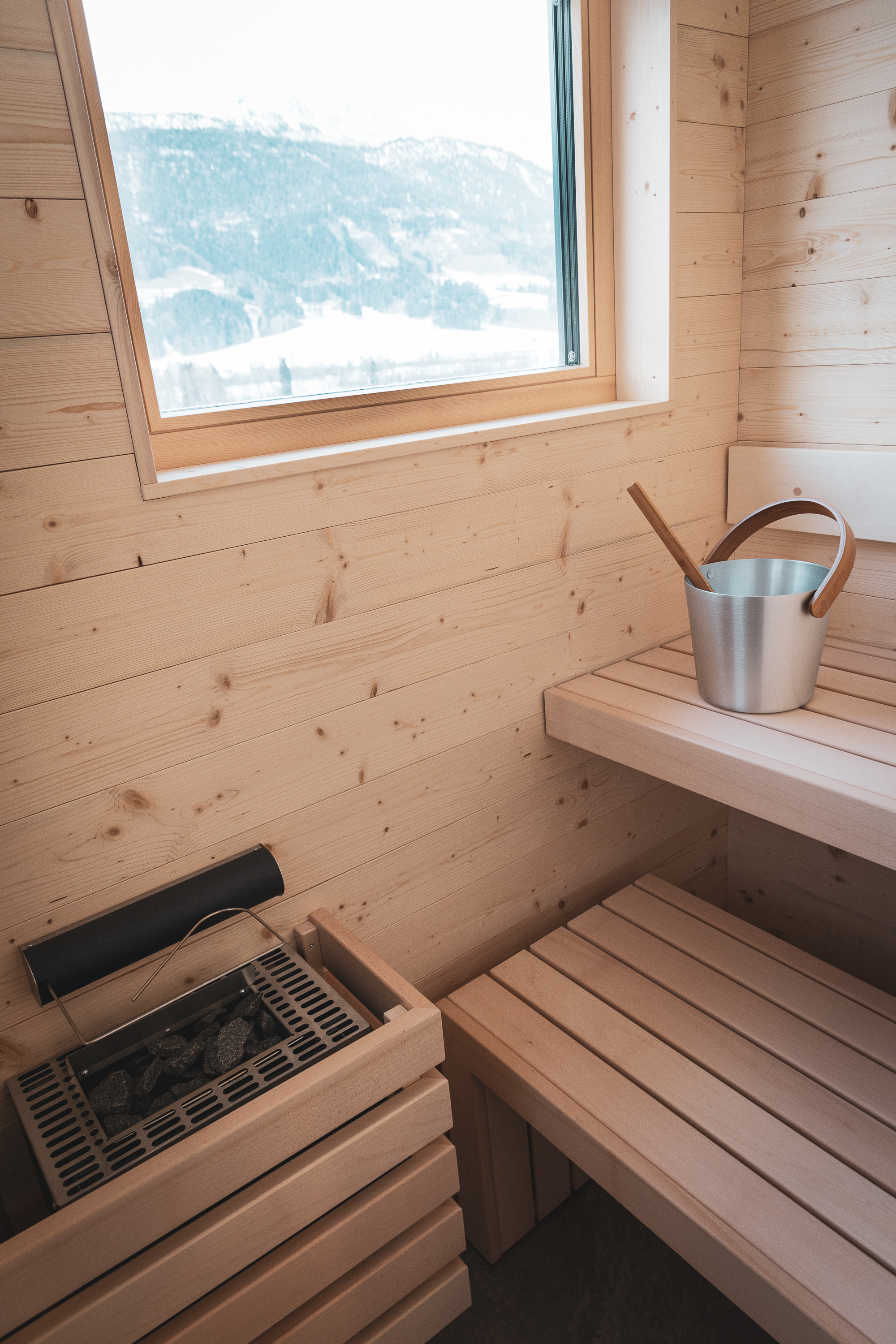 Nach einem aufregenden Tag können Sie in unseren Appartements entspannen und den Blick auf die verschneiten Berge und die untergehende Sonne genießen. Lassen Sie den Tag entspannt in der Sauna ausklingen.